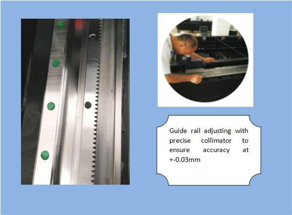 | Nomo:Precizaj Linearaj Gvidiloj Altnivela tranĉanta sistemo, lasera potenco kaj servo-movado konvenas unu al la alia perfekte, importis altan precizecan ilaron kaj rakedan veturan sistemon, interŝanĝan duoblan labor-tablon, por certigi pli altan pretigan rapidecon kaj precizecon .. |