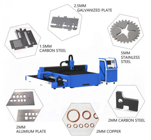 Lasera Metala Tranĉa Maŝino estas vaste uzata en aparataro, preciza maŝinaro, aŭto-komponentoj, vitraj horloĝoj kaj horloĝoj, preciza tranĉado, medicina ekipaĵo, instrumento kaj alia metala industrio.